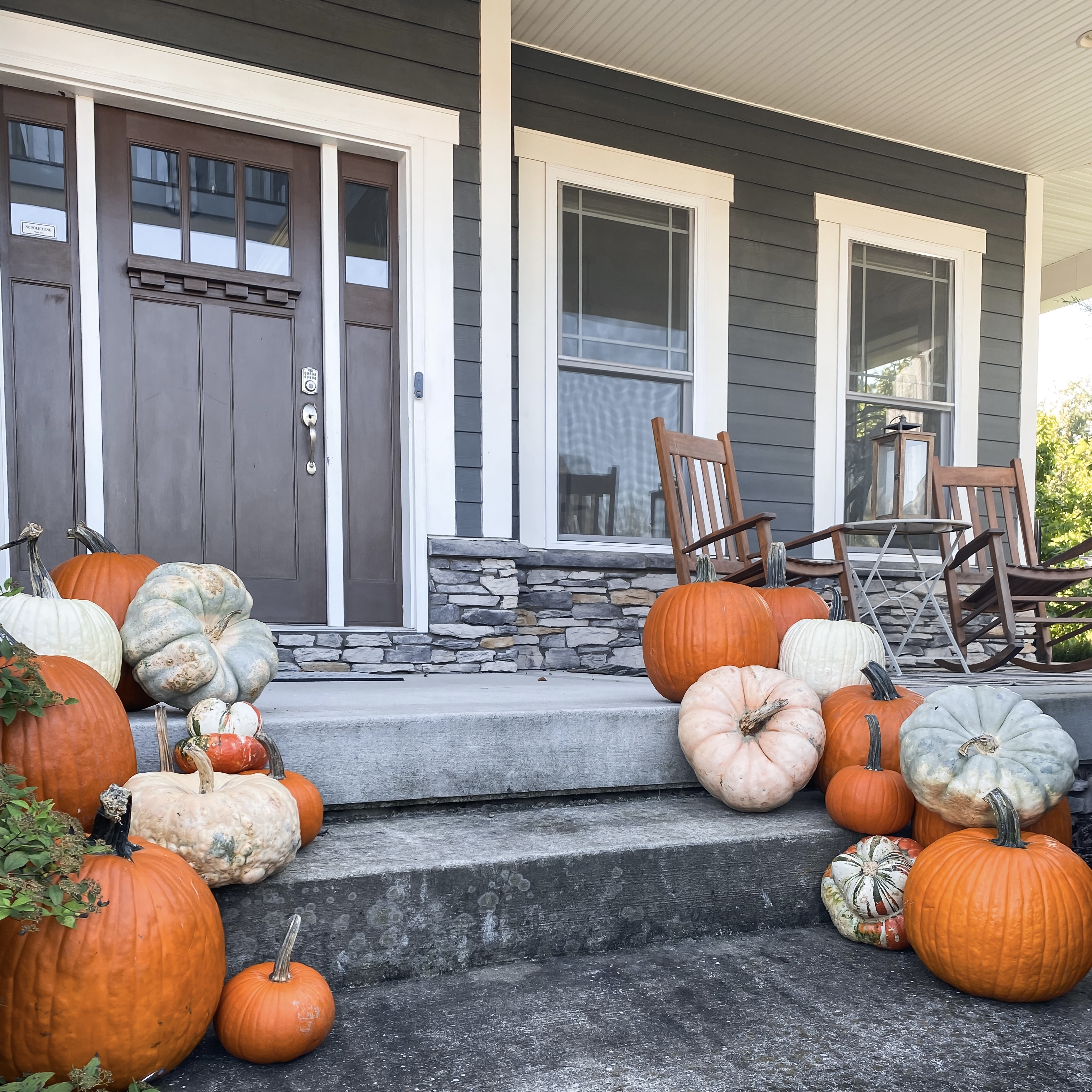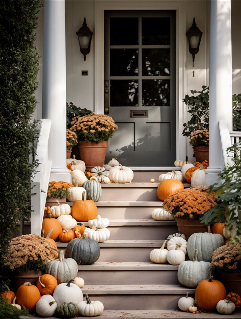 This grandiouse display includes 40+ of the finest pumpkins sourced from local farms. A variety of large, medium and small pumpkins are hand selected to create the perfect a sculptural design. This package is best for large porches with three or more steps.