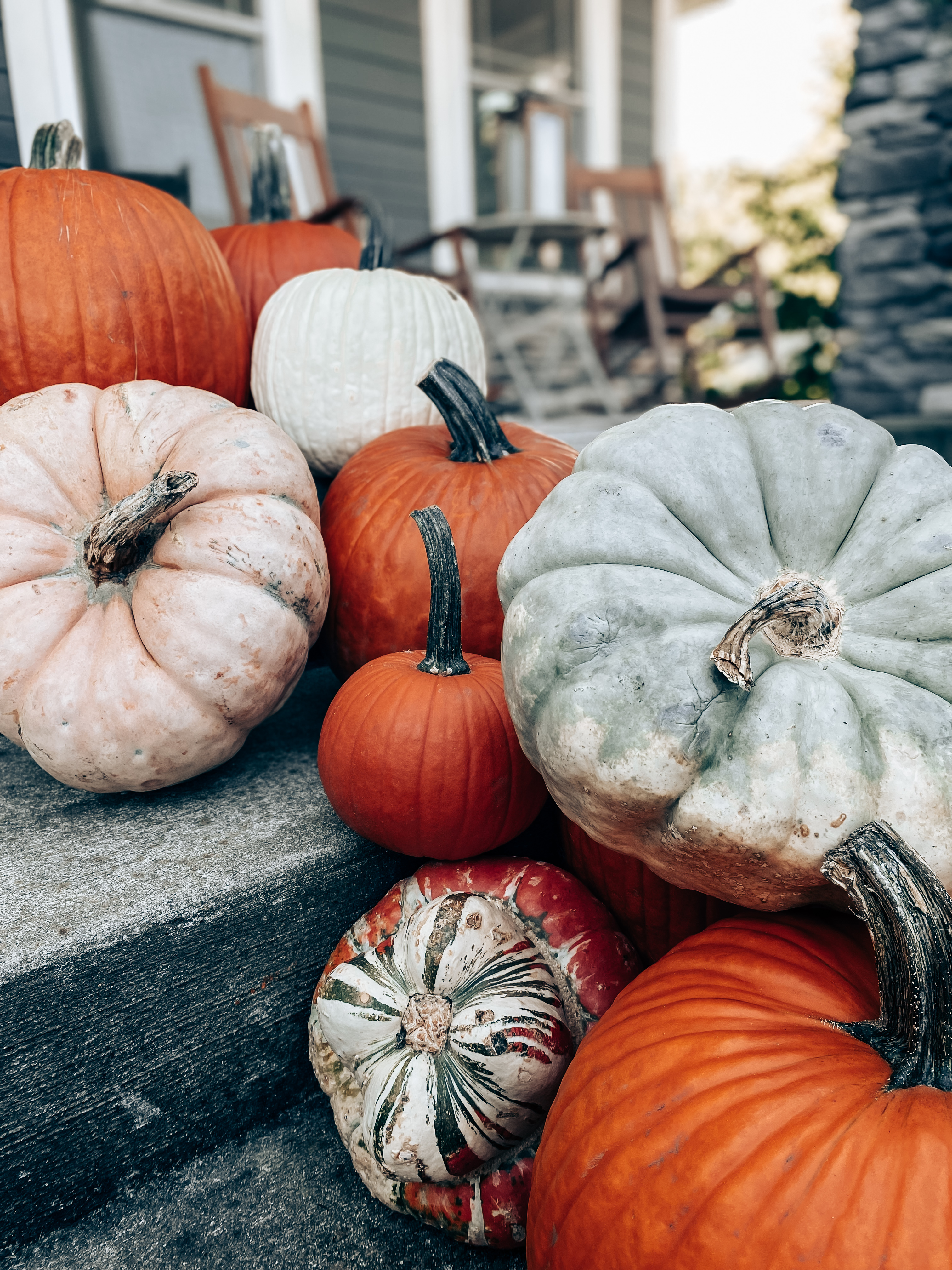 11 hand picked pumpkins and squash sourced from local farms. A variety of large, medium and small to create a beautifully sculptured home entrance.